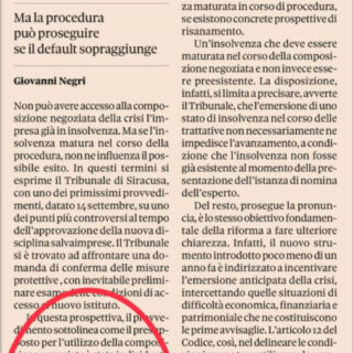 ◆Buongiorno collega, tra i quaderni recentissimamente pubblicati dalla Scuola Superiore della Magistratura, Ente di formazione e aggiornamento professionale per Magistrati, risalta quello su “Gli assetti organizzativi per l’impresa”. Ovvero La Scuola Superiore della Magistratura...